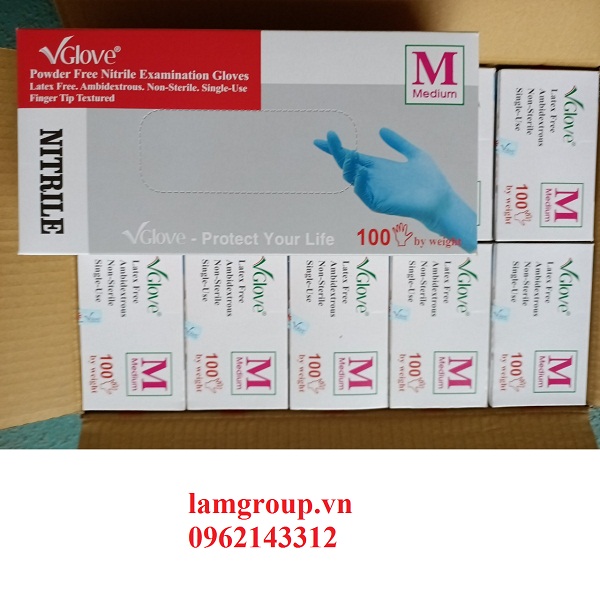 Vgloves: găng tay nitrile trắng 3,5g và xanh 4.0g